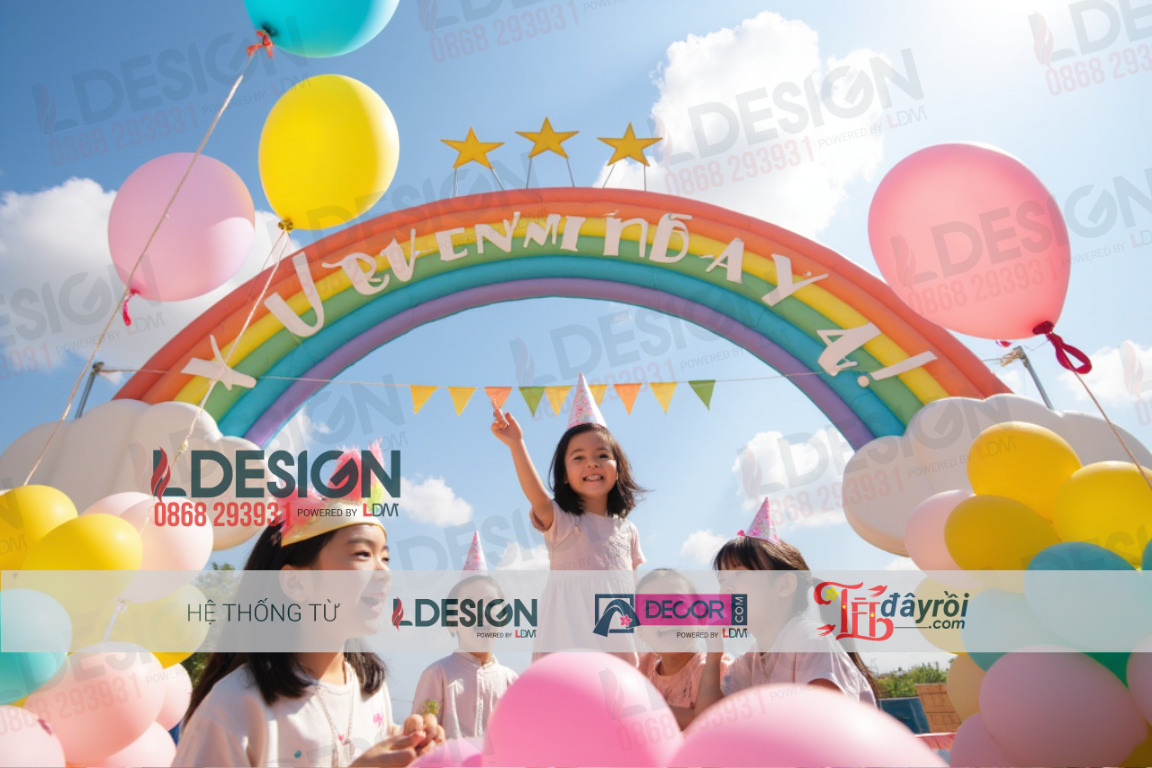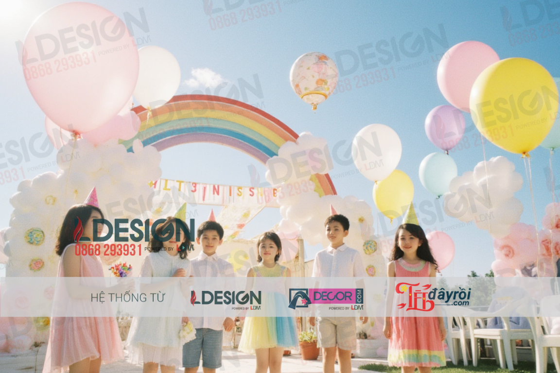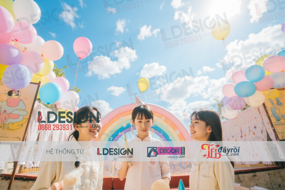 Trang Trí Đa Dạng: Sử dụng các phụ kiện trang trí như cờ dây, backdrop hoặc bàn tiệc kết hợp với bong bóng để tạo nên một không gian ấn tượng và hấp dẫn.