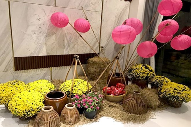 Không gian đậm bản sắc Việt với nhà tranh, tre nứa, bánh chưng, ông đồ, chợ quê… phù hợp cho trường học, khu dân cư, công viên.