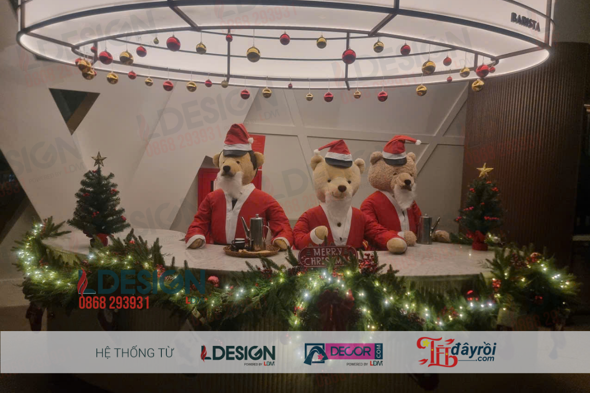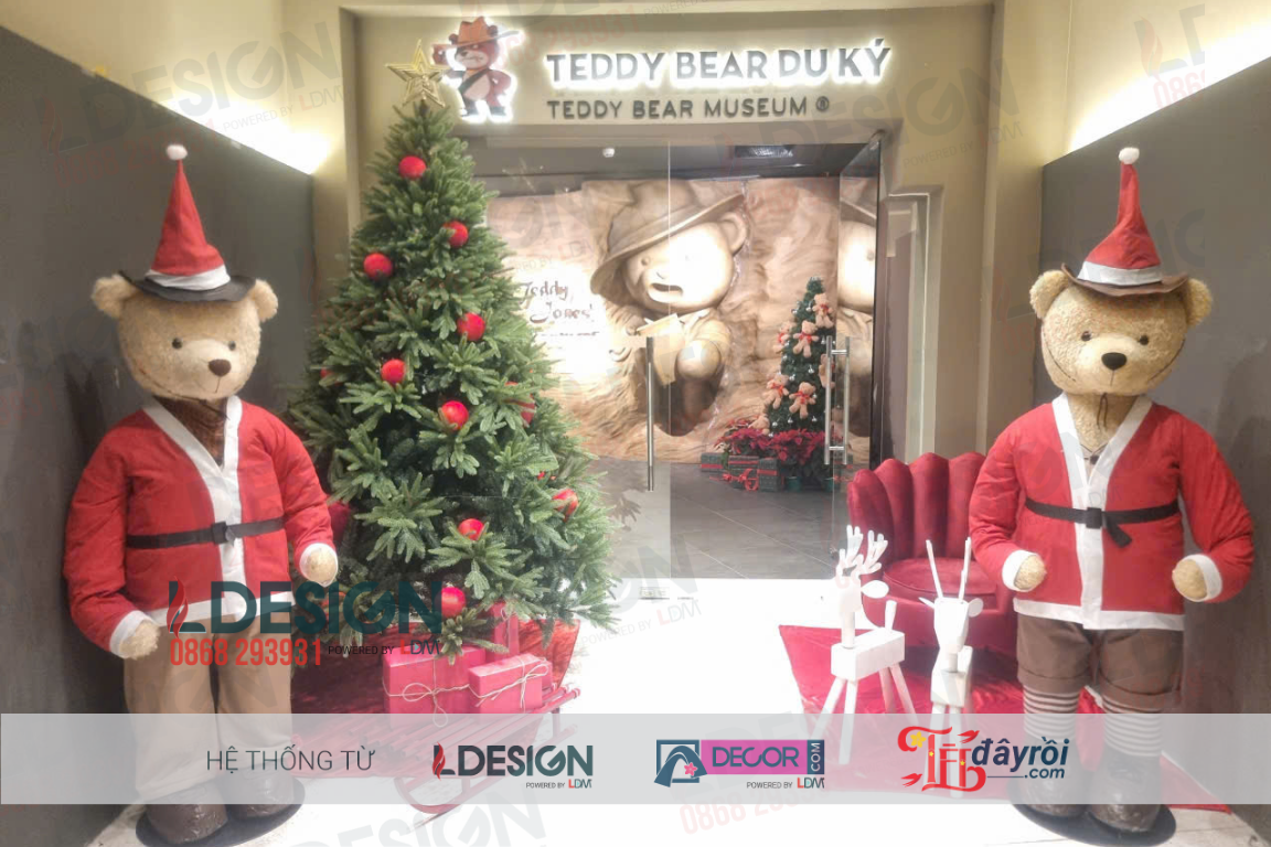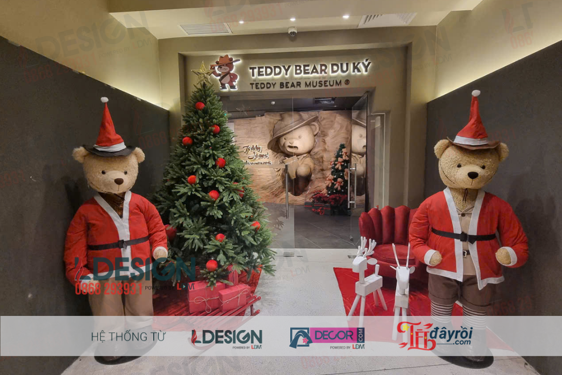 Với đặc thù là điểm đến du lịch kết hợp check-in, không gian trang trí Giáng Sinh tại Bảo tàng Gấu được thiết kế theo phong cách vui nhộn, gần gũi nhưng vẫn đảm bảo tính thẩm mỹ cao. Các hạng mục trang trí được bố trí hợp lý tại khu vực sảnh, lối đi chính và không gian trưng bày, tạo sự liền mạch cho toàn bộ hành trình tham quan.