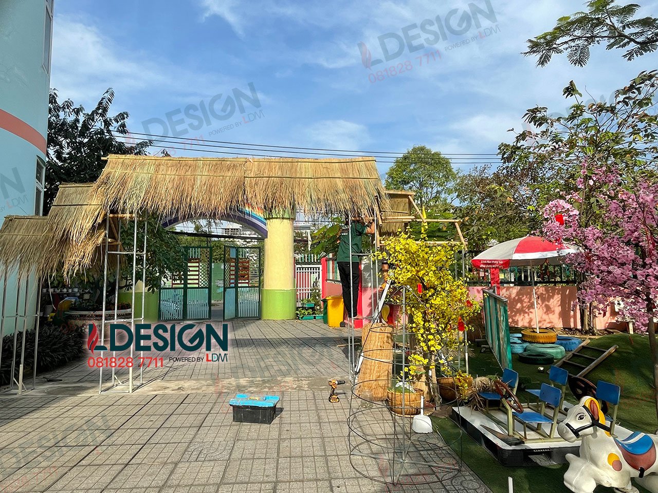 Trang trí tiểu cảnh hội xuân mầm non Mây Hồng 2023 - Thành Phố Thủ Đức